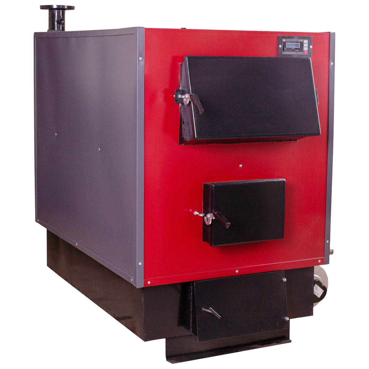 1 – Вентилятор; 2 – Патрубок обратки; 3 – Дверца нижняя; 4 – Топка; 5 – Перегородка; 6 – Трубы радиационные; 7 – Дверца верхняя; 8 – Обшивка; 9 – Изоляция; 10 – Крышка; 11 – Перегородка; 12 – Термометр; 12А – Автоматический развоздушник (от 95 кВт); 12Б – Предохранительный клапан; 13 – Патрубок верхний; 14 – Рукоятка; 15 – Шибер; 16 – Дымоход; 17 – Лючок зольника; 18 – Зольник; 19 – Поворотная камера; 20 – Колосники; 21– Патрубок опорожнения котла; 22 – Дверца зольного ящика; 23 – Контроллер котла; 24- терморегулятор (регулятор тяги) для котлов при соответствующем заказе.